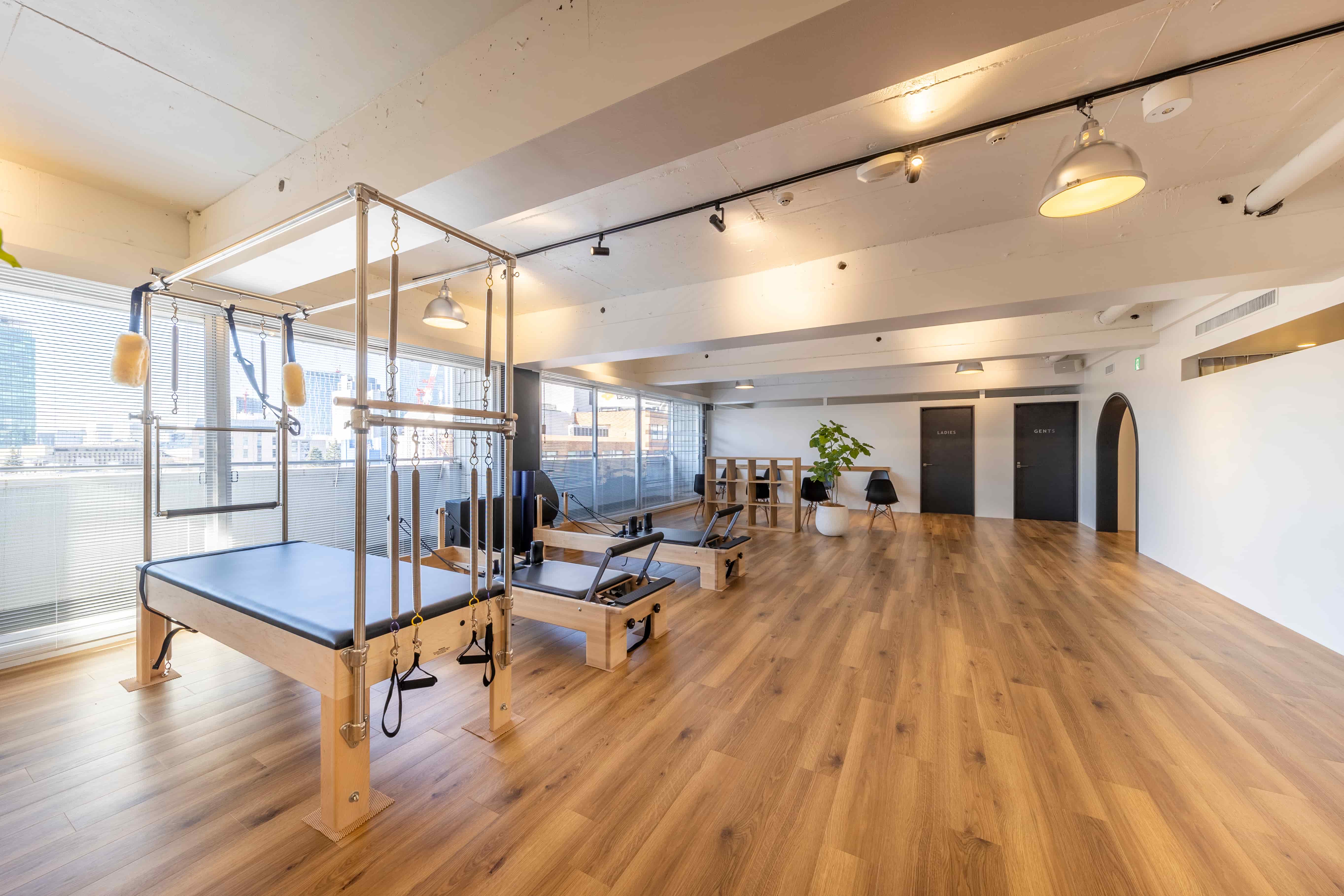 身体を整えるために、ニュートラルな自分に戻れるようなスタジオを造らせていただきました。 広々としたスタジオはモノトーンの壁で上品に。床材に木目調を採用することで暖かく安心できる空間に仕上げています。